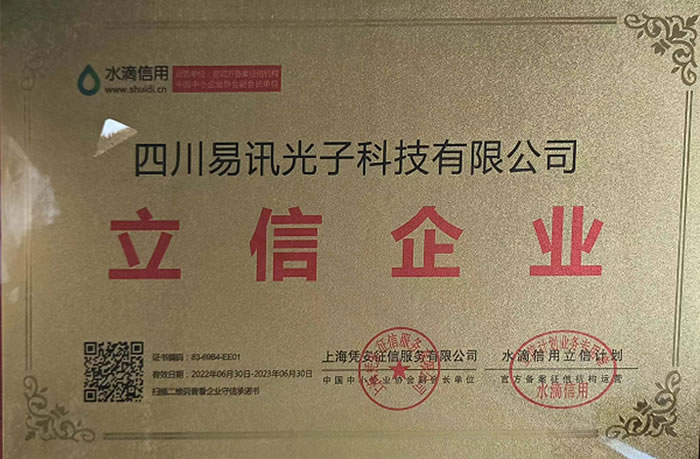 四川易讯光子科技有限公司凭自己雄厚的团队力量、杰出的技术创新力,不断开拓、不断进取、不断地努力和成长,获得了广大客户的高度认可,此次获奖更是对四川易讯光子在业界内的再次肯定与认同。
